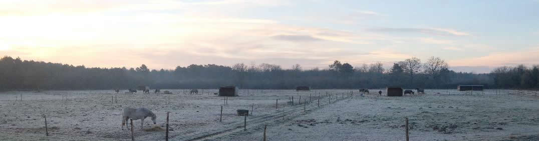 En fonction des caprices de la météo , sur les 20 ha de prairies, l'herbe est au rendez-vous au printemps. En hiver, chaque cheval a un abri dans son paddock, seul ou accompagné selon le choix du propriétaire.